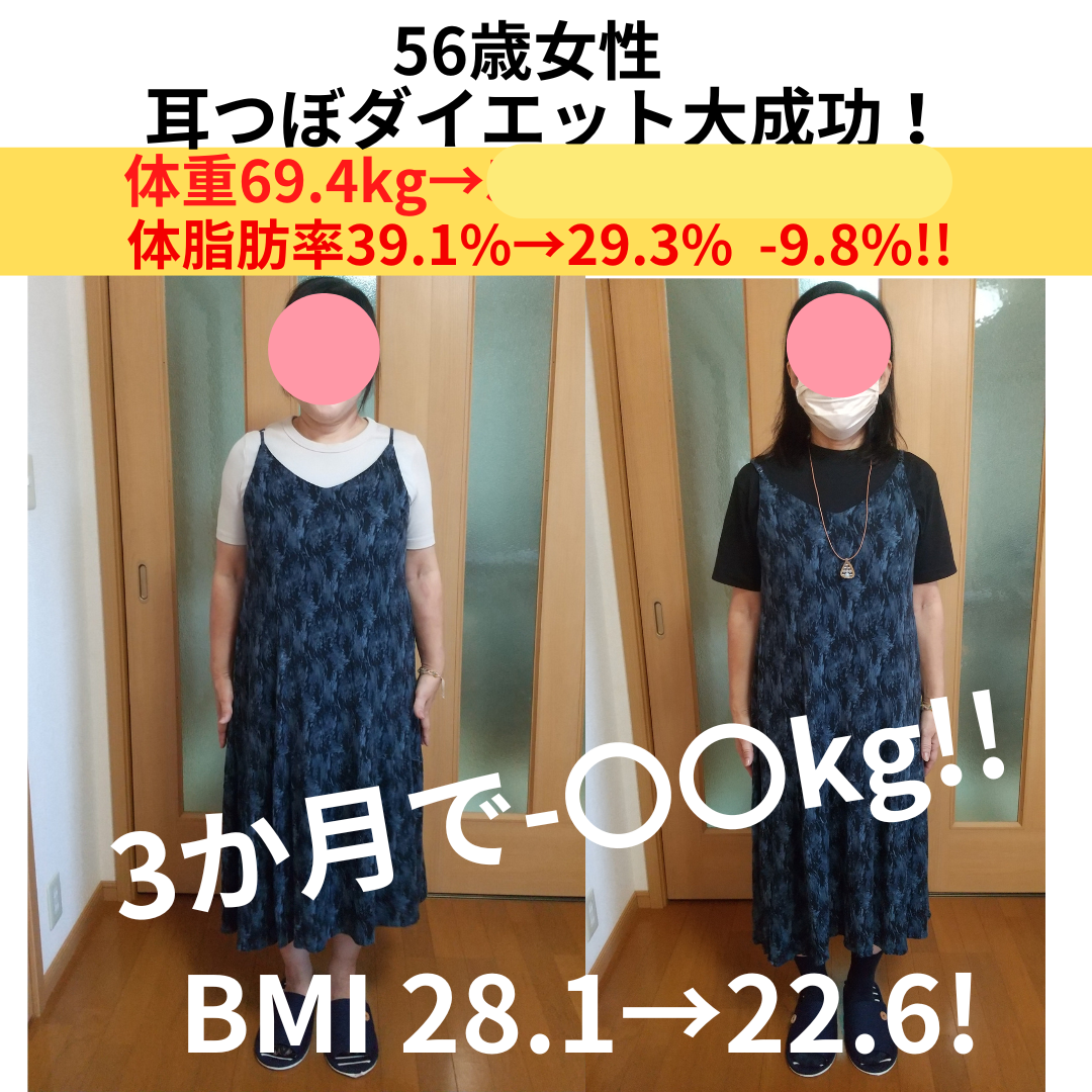 56歳女性耳ツボダイエットで-◯kg!ビフォーアフター米子すりむミミ